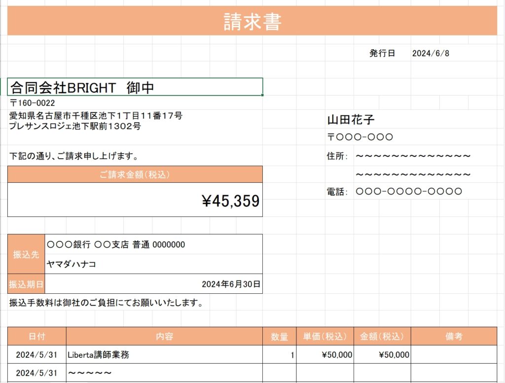 ③請求書を記入後、講師チャットに請求書(PDF)をメール送信。※件名「名前 2024年〇月 請求書」で送信。前月の報酬なので件名を間違えないようにお願いいたします。